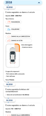 Scarica il reportIl nostro report base è un utile strumento per verificare un veicolo usato. I dati in esso contenuti rappresentano un riepilogo fondamentale delle informazioni necessarie per conoscere la sua storia. Tutte le informazioni contenute nel report sono elementi essenziali per il controllo dell'auto. Ti invitiamo a scoprire la gamma di informazioni disponibili nel report autoDNA:
